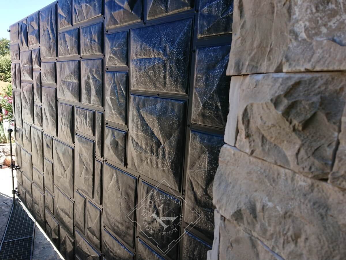 Polna dvoriščna vrata poskrbijo za zasebnost v starem jedru mesta. Na vrhu vrat ročno kovana skulptura – zgodovinski relief iz fasade.