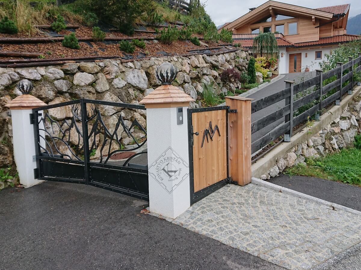 Dvokrilna kovana dvoriščna vrata. Z ločenim osebnim vhodom.