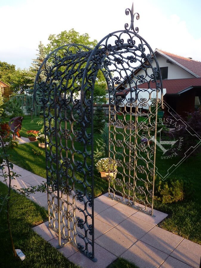 Kovane vrtne pergole za senco. Kovane brajde za grozdje. Oboki za vrtnice.